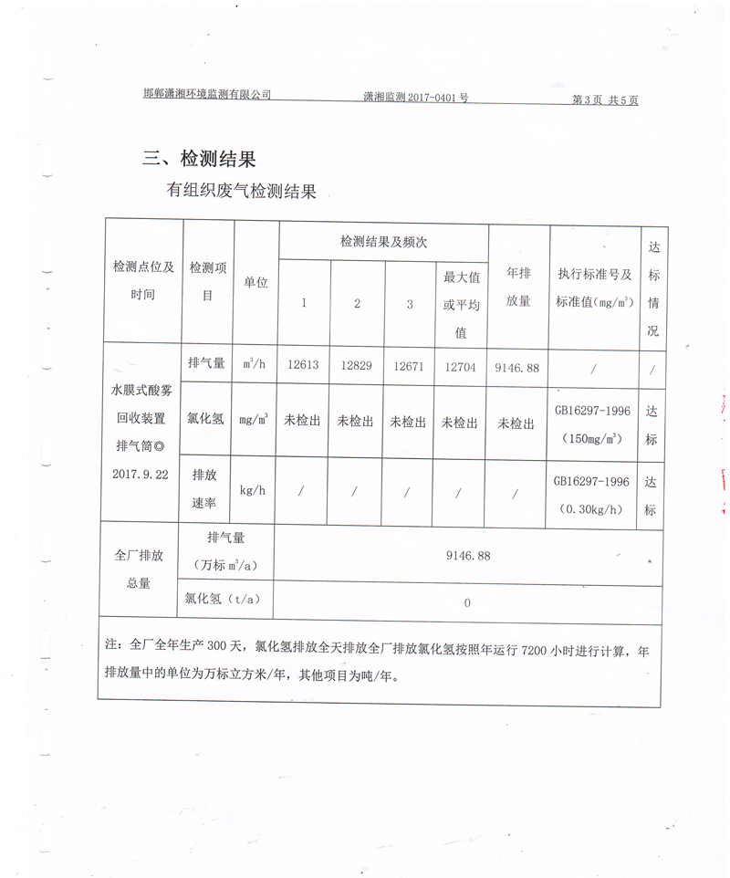 我們為每位客戶提供酸霧設備的專業氣體檢測,每個客戶的檢測結果都大大低于國家標準和地方標準。